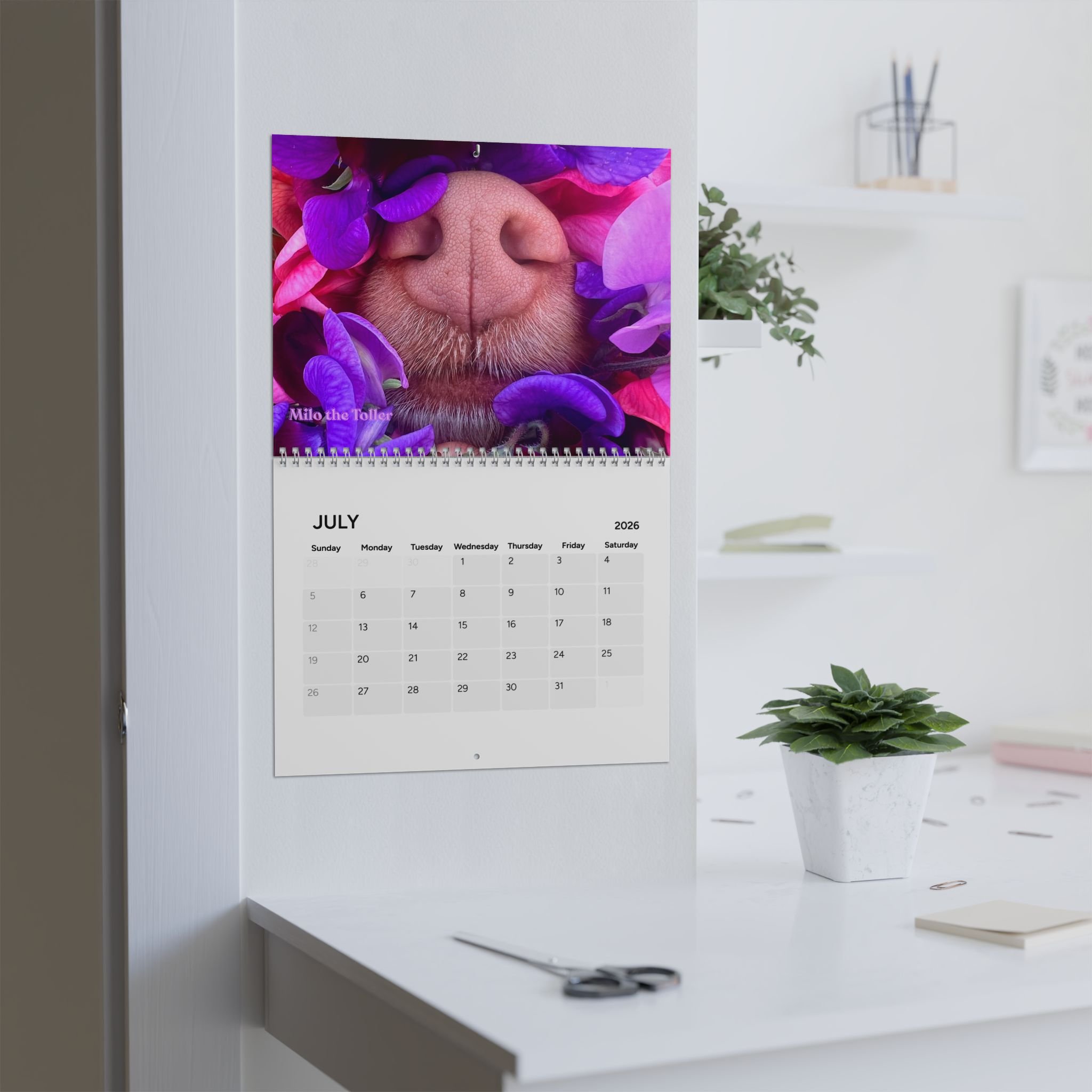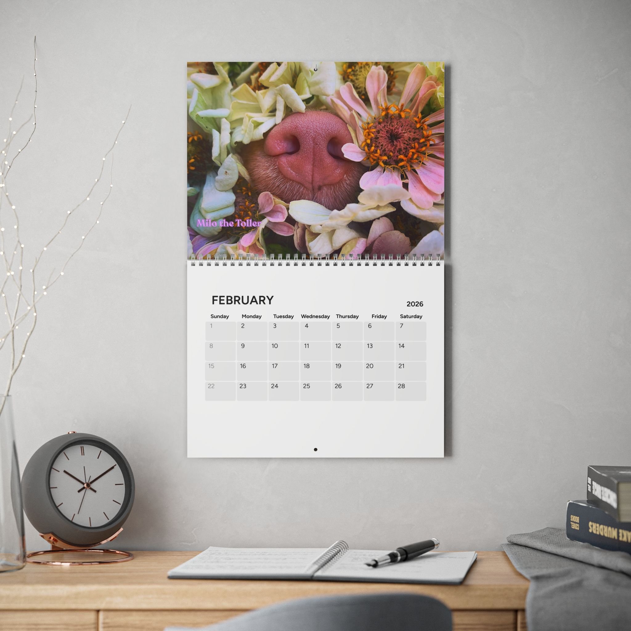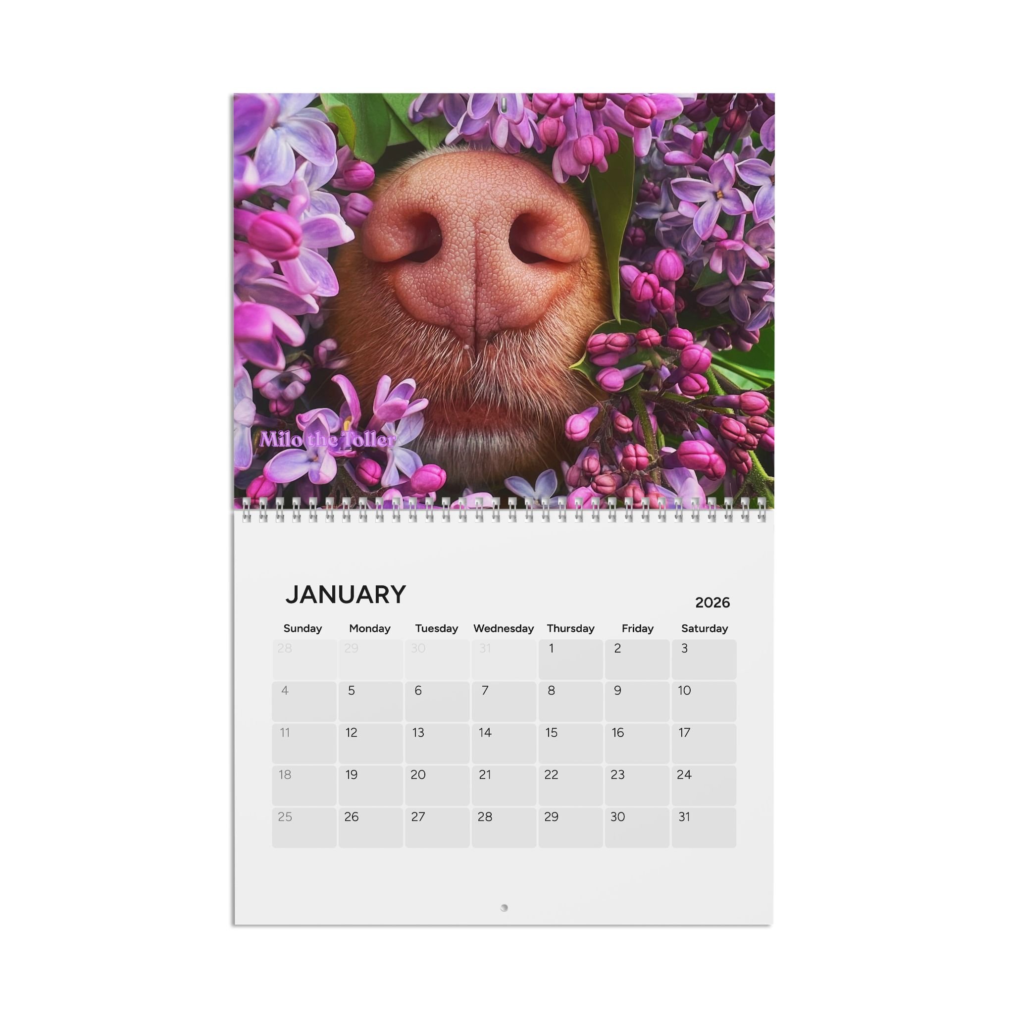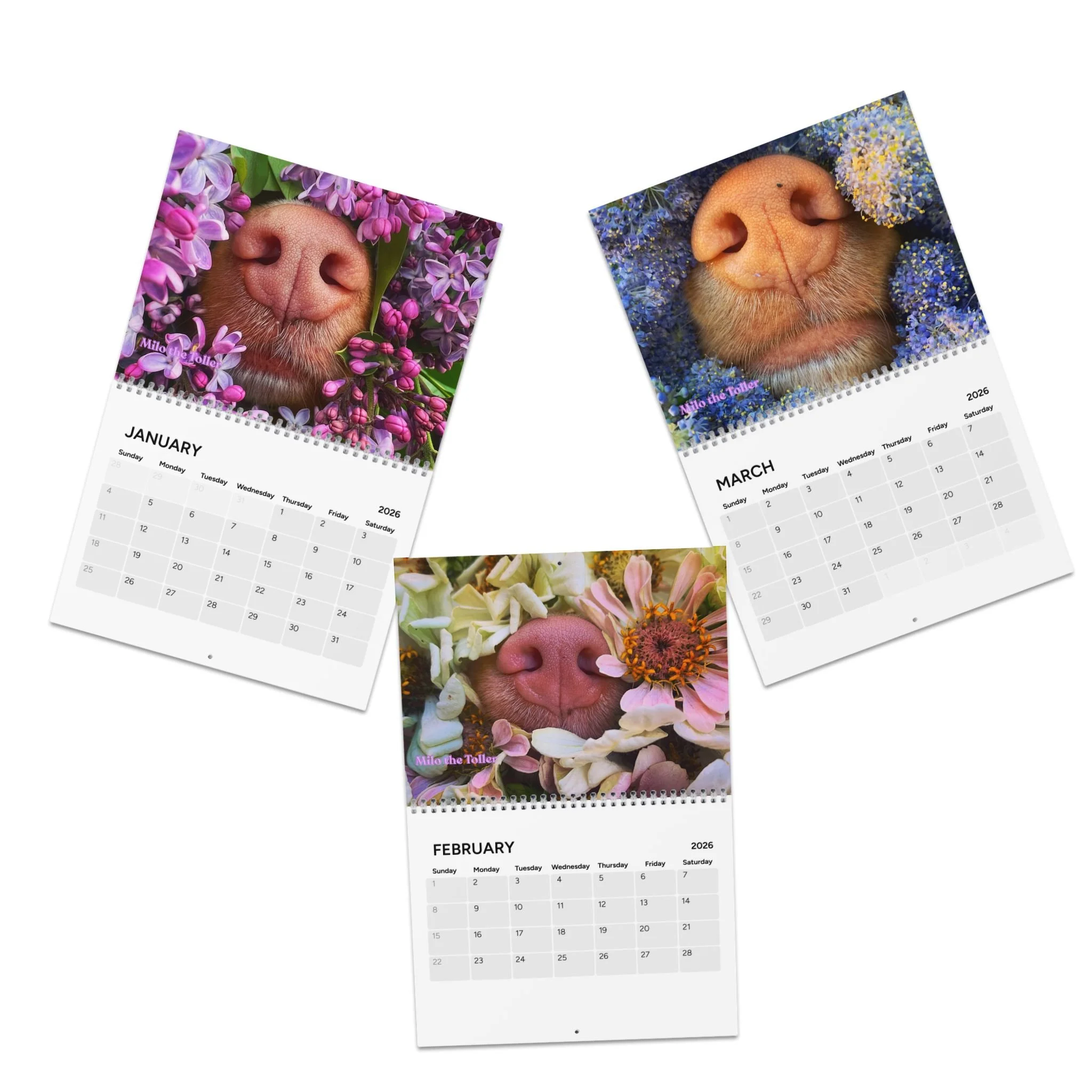 Categories: All Phone Case Notebooks Tote Bag Mouse Pads Mugs Magnet Donation Sticker Cards Calendar Prints All / Calendar Floral Boop Nose Milo Desktop Calendar - 2026 Desk Planner $20.00 2026 Milo's Farm Calendar $25.00 2026 Milo's Boop Nose Calendar $25.00