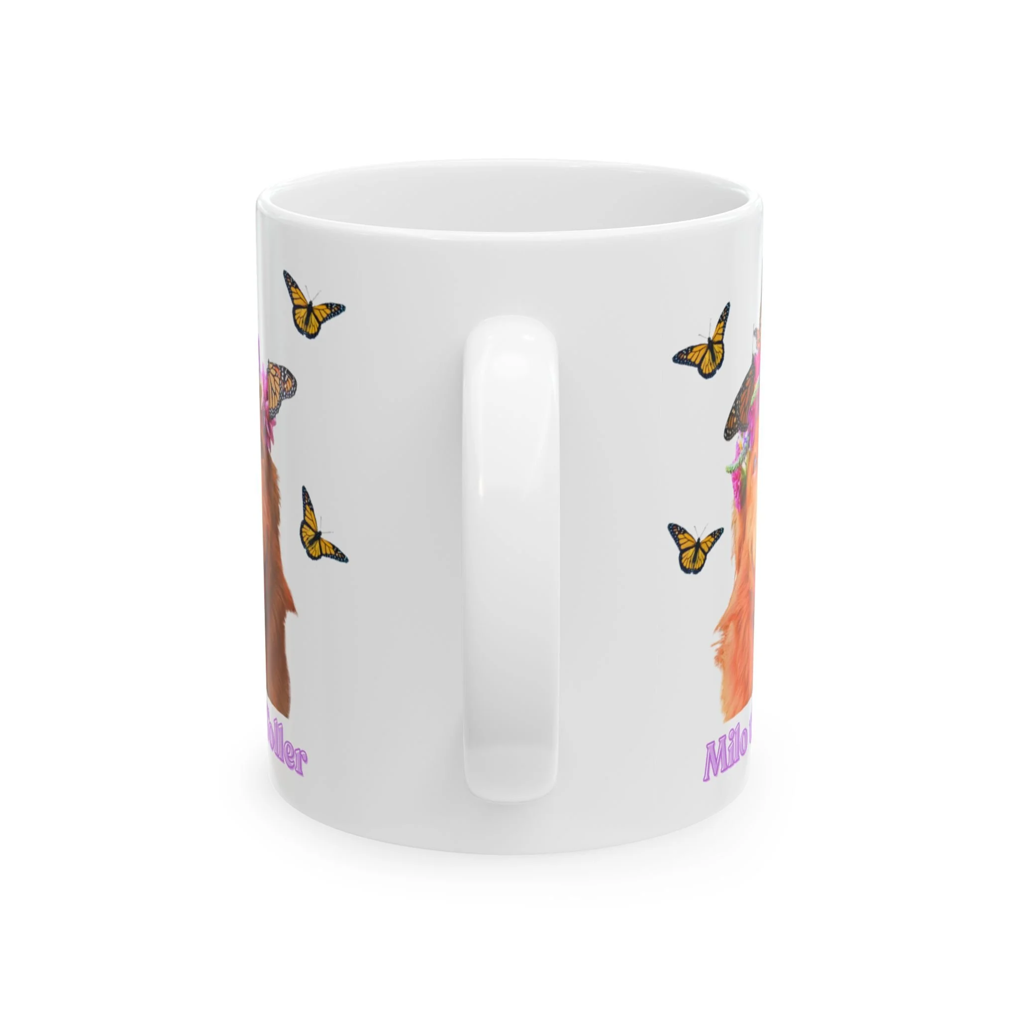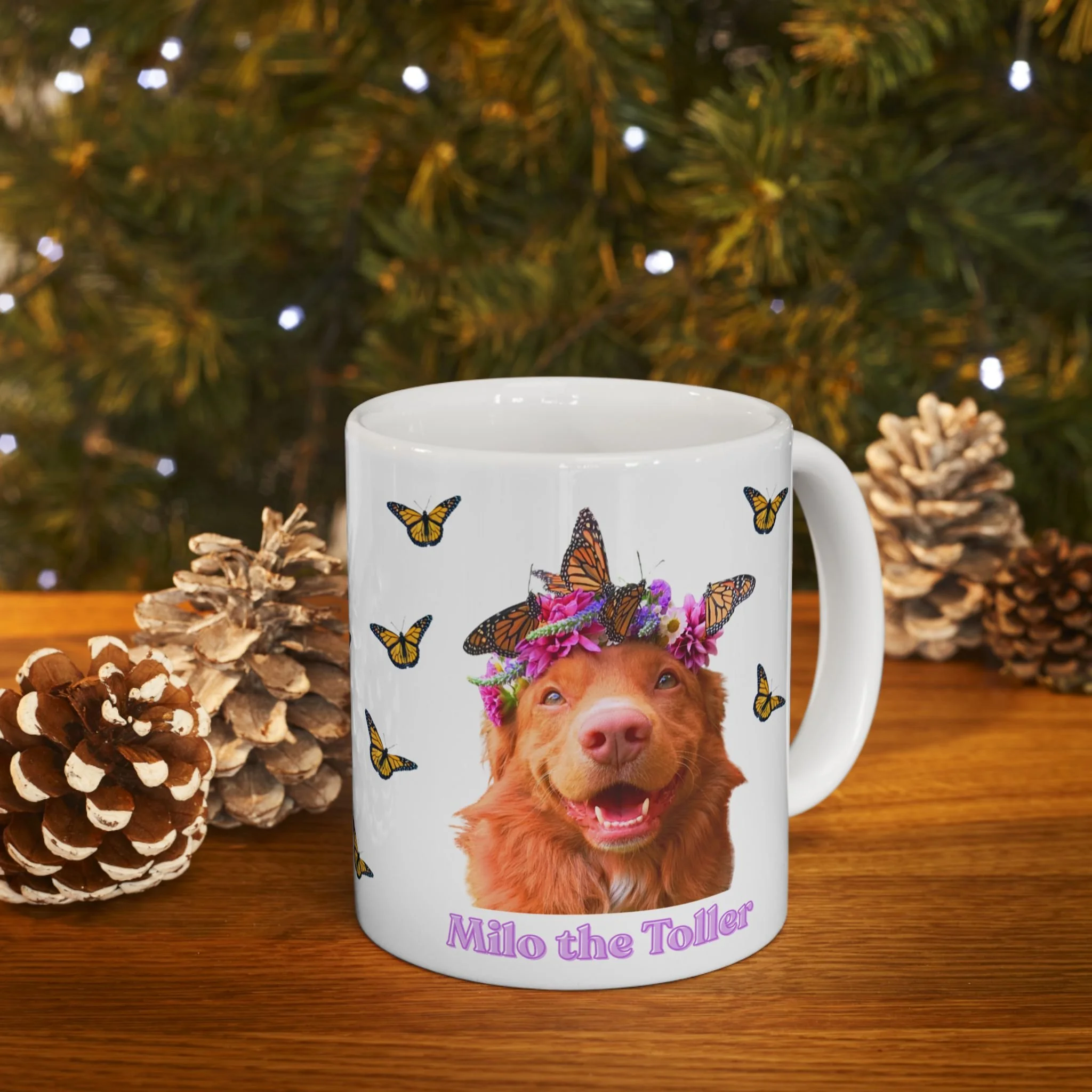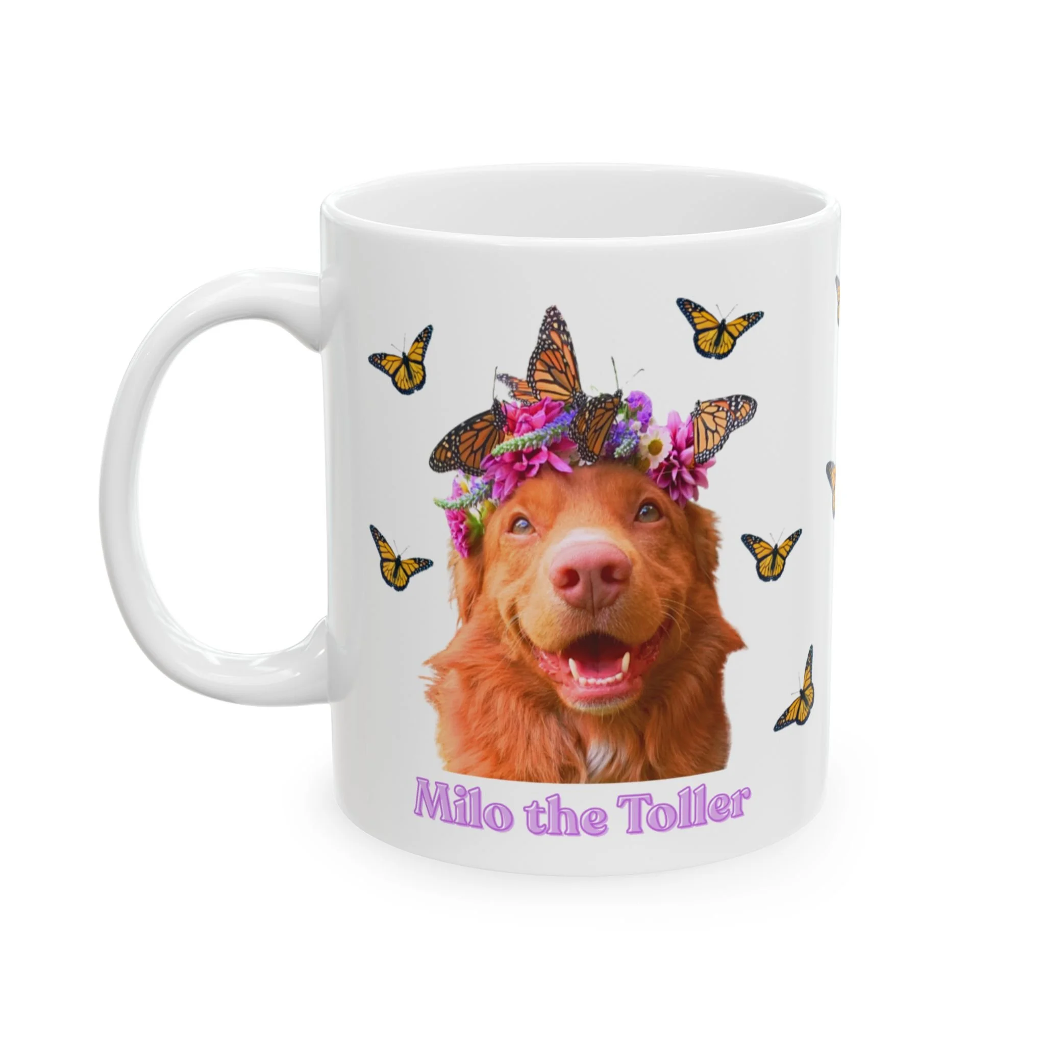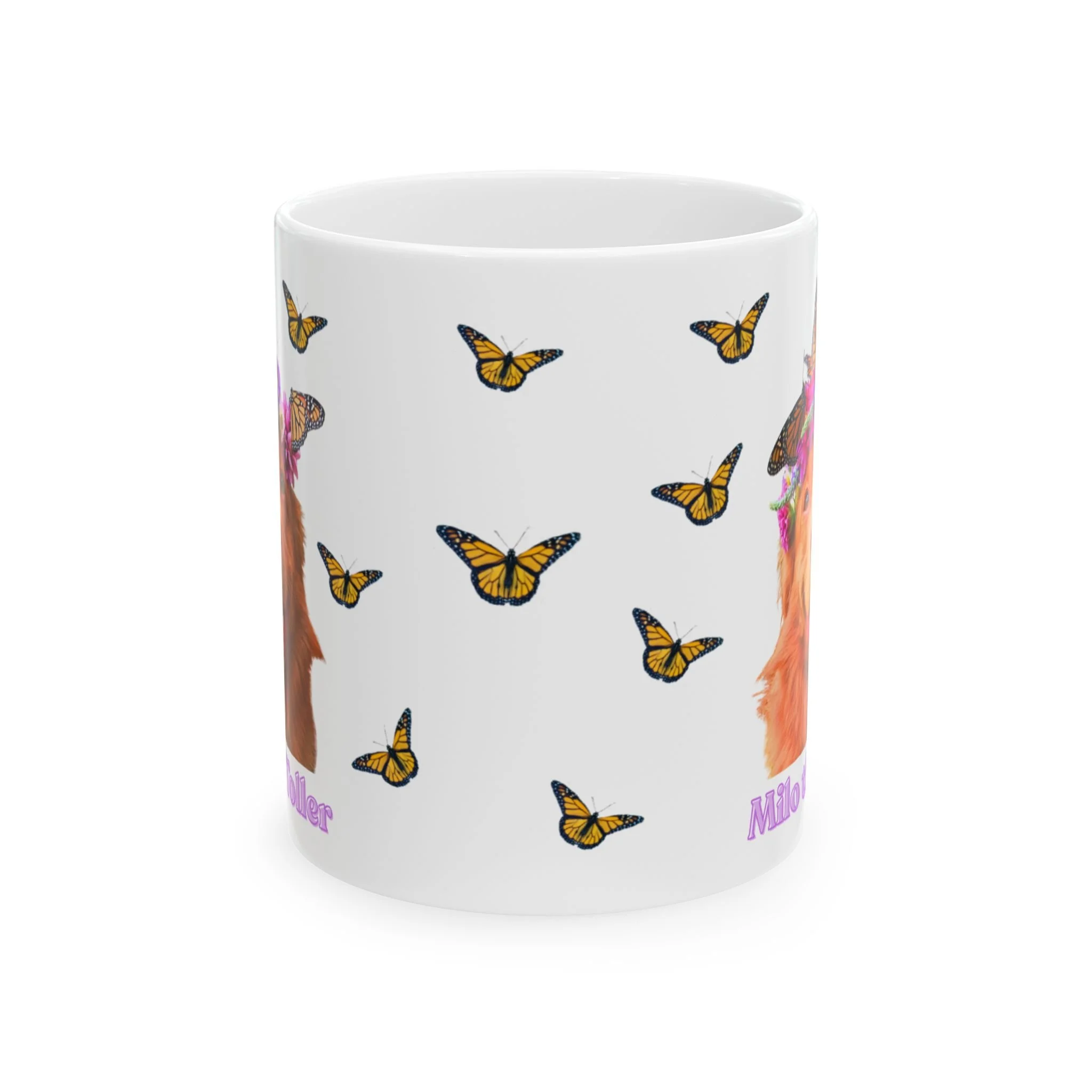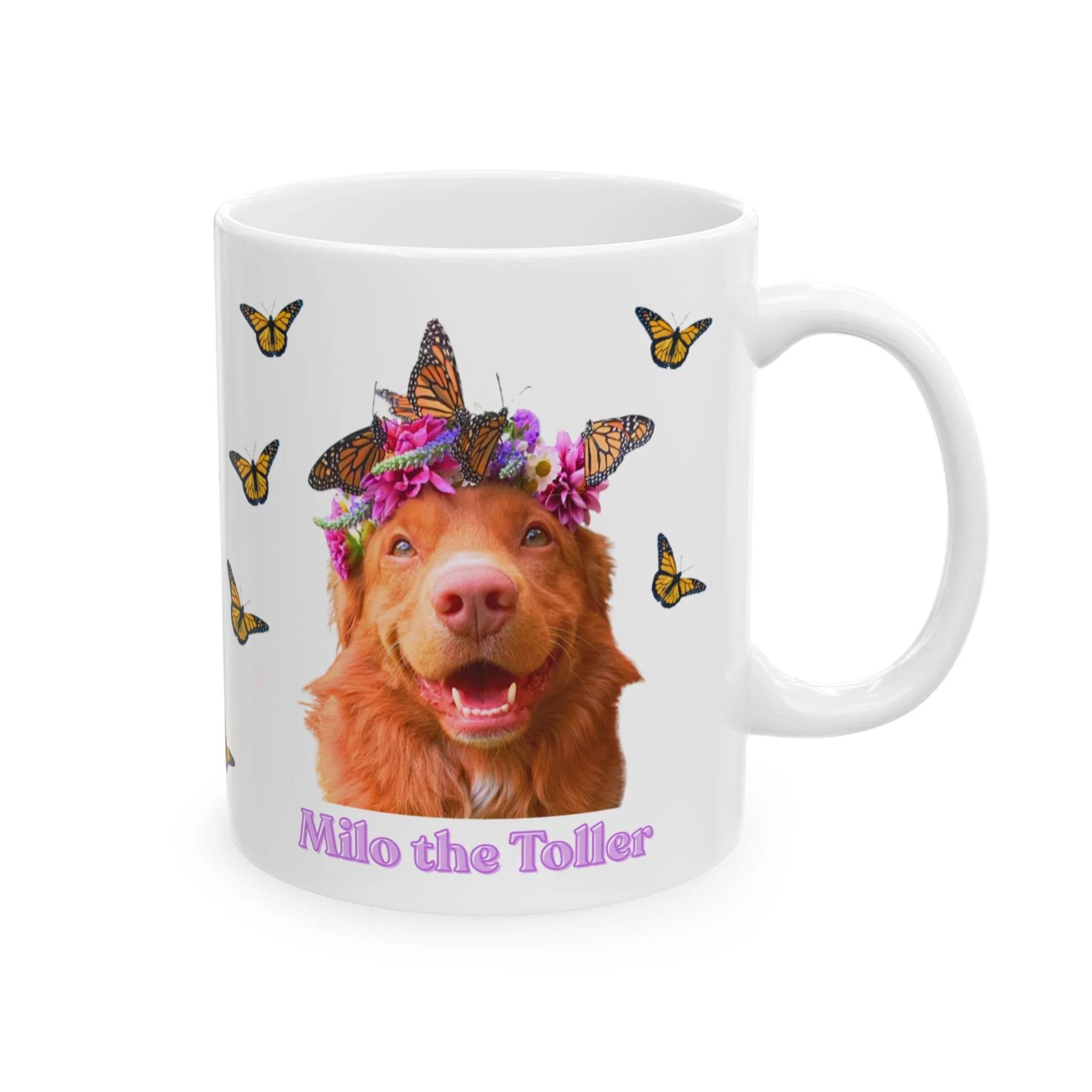 Categories: All Phone Case Notebooks Tote Bag Mouse Pads Mugs Magnet Donation Sticker Cards Calendar Prints All / Mugs Milo the Toller Ceramic Mug with all his butterfly friends! $22.00