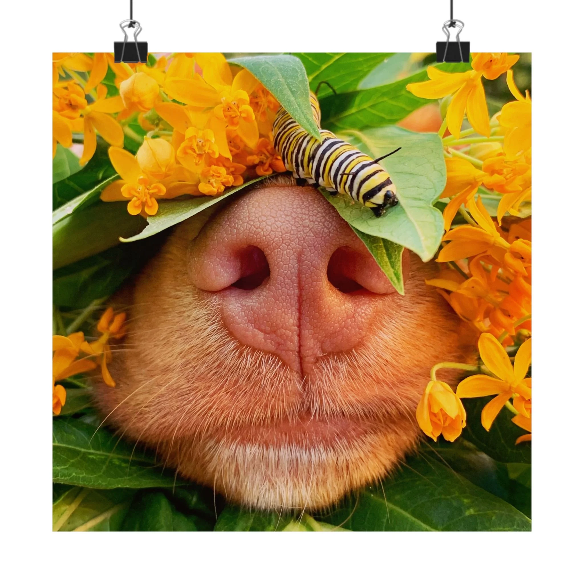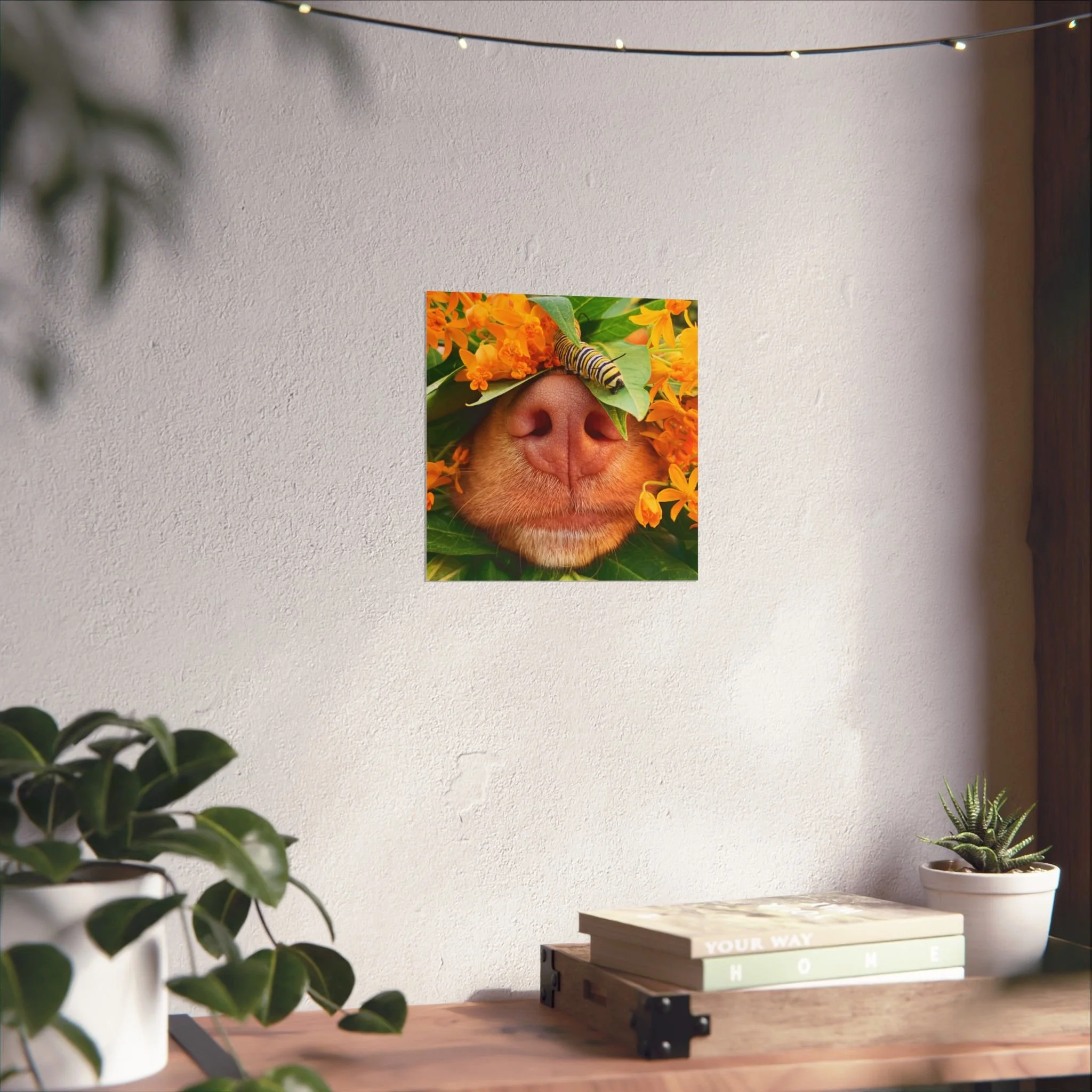 Transform your space with these stunning Matte Posters. Milo's noes in a cluster of beautiful flowers brightens any space.