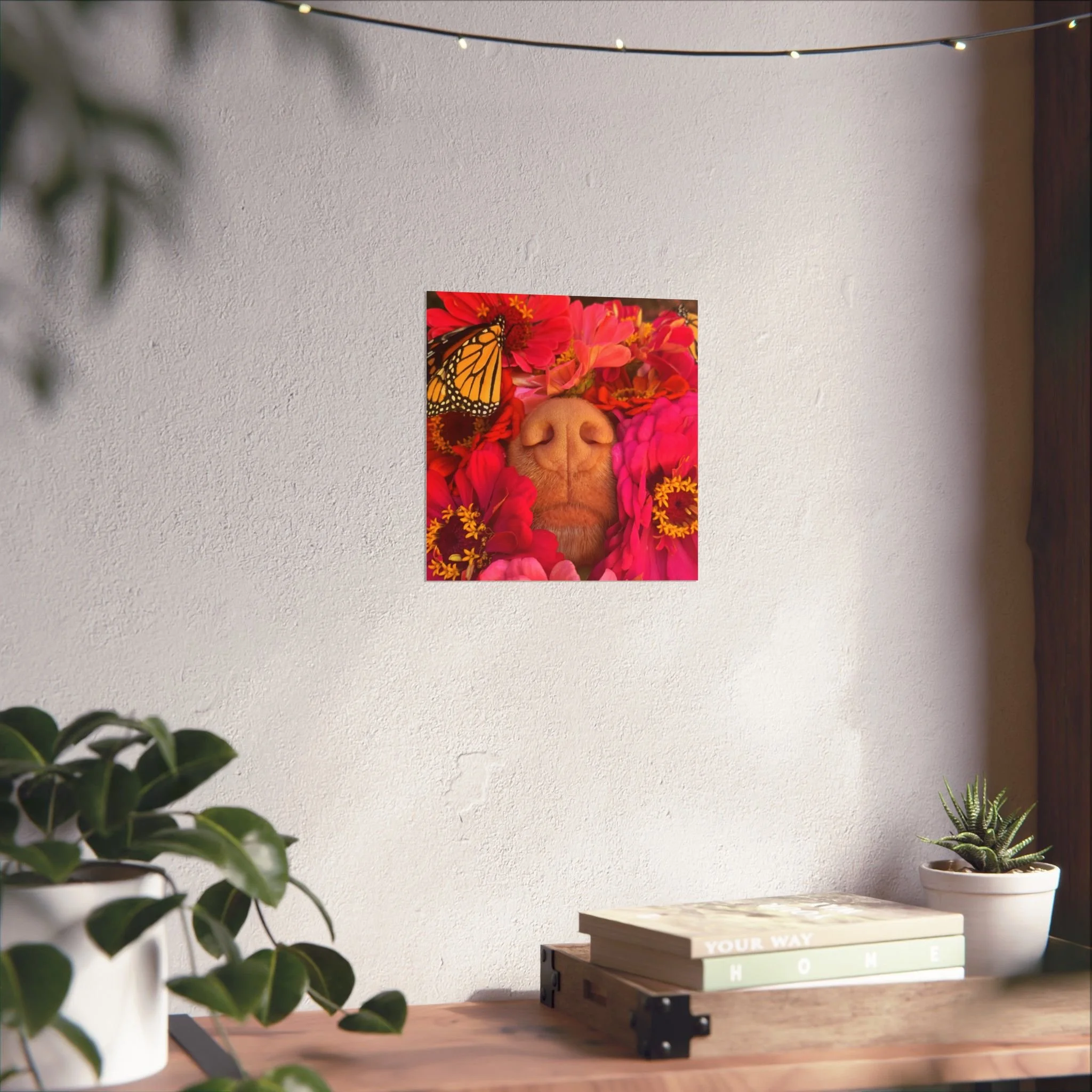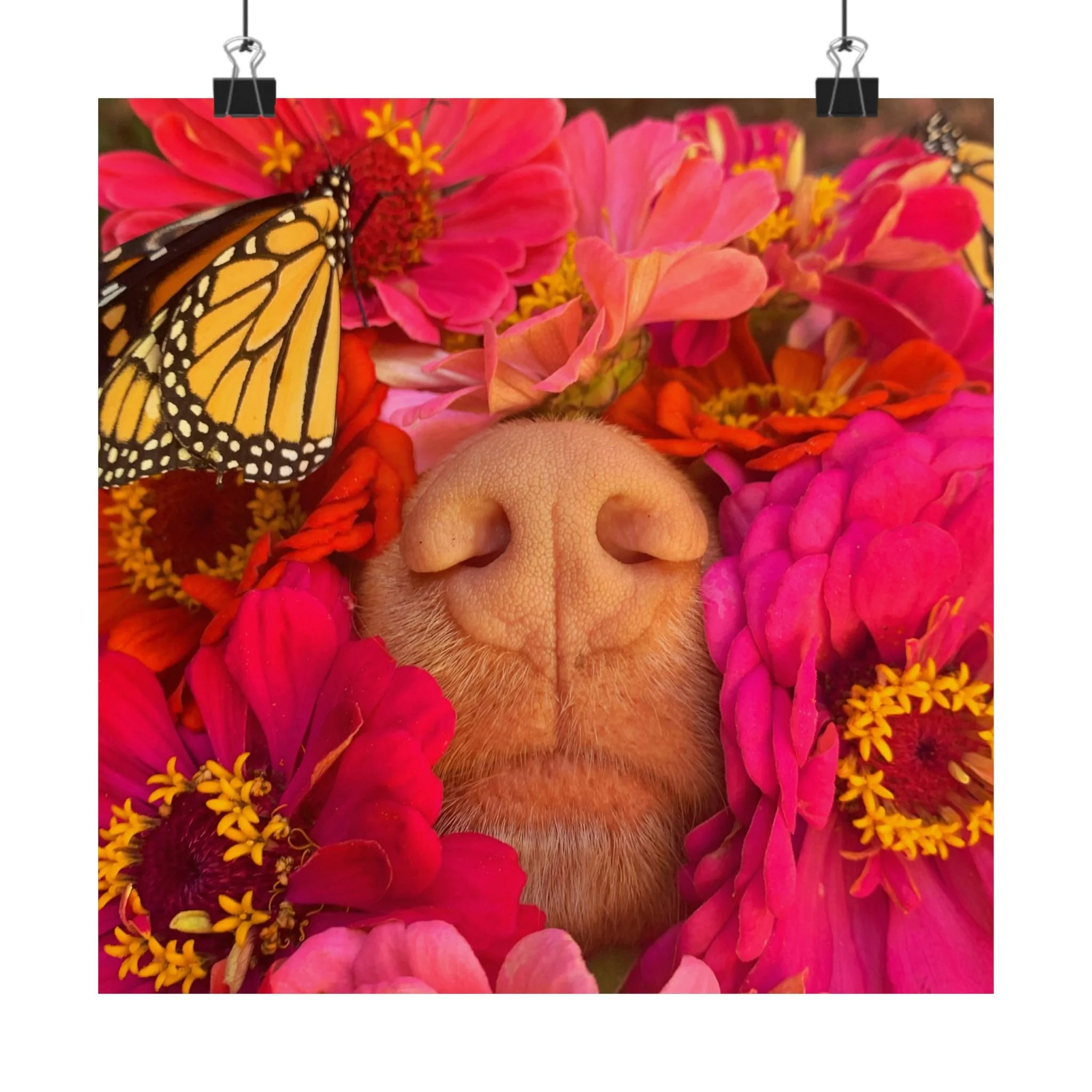 Transform your space with these stunning Matte Posters. Milo's noes in a cluster of beautiful flowers brightens any space.